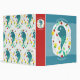 Awesome retro style fish or seafood platter with happy blue fish holding a glass of wine, garnishes, forks and custom colour background on this recipe binder, recipe organizer or personal cookbook for your keepsake cooking and baking recipes.