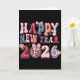 Retro Happy New Year 2026 Coquette Bow Disco Ball Card