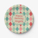 Retro Harlequin Geometric Pattern Personalized Paper Plate