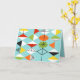 This Retro Harlequin Pattern Greeting Card is mid century modern style at its finest. The front of this vintage inspired design features an aqua background with rows of triangular shapes forming a harlequin pattern. The two-toned diamond shapes are yellow, white, red, orange, black, green, and white with black accents. But wait, there’s more! There are also orange ovals, green ovals with black starbursts, and outlines of black diamonds. The interior of this greeting card is solid aqua with plenty of space for personalizing. Time marches on, but you’ll feel like you’ve found a kitschy blast from the past with this colourful geometric treasure.