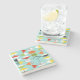 This Retro Harlequin Pattern Marble Stone Coaster is mid century modern style at its finest. The vintage inspired design features an aqua background with rows of triangular shapes forming a harlequin pattern. The two-toned diamond shapes are yellow, white, red, orange, black, green, and white with black accents. But wait, there’s more! There are also orange ovals, green ovals with black starbursts, and outlines of black diamonds. Time marches on, but you’ll feel like you’ve found a kitschy blast from the past with this colourful geometric treasure.
