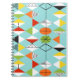 This Retro Harlequin Pattern Notebook is mid century modern style at its finest. The vintage inspired design features an aqua background with rows of triangular shapes forming a harlequin pattern. The two-toned diamond shapes are yellow, white, red, orange, black, green, and white with black accents. But wait, there’s more! There are also orange ovals, green ovals with black starbursts, and outlines of black diamonds. Time marches on, but you’ll feel like you’ve found a kitschy blast from the past with this colourful geometric treasure.