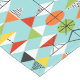 This Retro Harlequin Pattern Table Runner is mid century modern style at its finest. The vintage inspired design features an aqua background with rows of triangular shapes forming a harlequin pattern. The two-toned diamond shapes are yellow, white, red, orange, black, green, and white with black accents. But wait, there’s more! There are also orange ovals, green ovals with black starbursts, and outlines of black diamonds. Time marches on, but you’ll feel like you’ve found a kitschy blast from the past with this colourful geometric treasure.