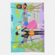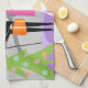 Mele Kalikimaka! This Retro Hawaiian Christmas Kitchen Towel features a minimalist cartoon drawing of an attractive couple taking the holiday trip of a lifetime! The mid century modern scene is set in a tropical airport. Mr. and Mrs. Tourist are posing in front of the floor to ceiling glass walls. After all, they want to document every moment of their vacation to paradise. Mr. Tourist is dressed in a black suit, light blue shirt, red tie, and black fedora. He is holding an orange suitcase. His arm is around his beautiful bride. She is wearing a hot pink dress. A bright blue handbag is slung over one arm. A Santa hat is gracing her blonde head. It wouldn't do to travel by air and not look your best! Both of them are wearing colourful flower leis around their necks. Beside them, we see a stunning, golden skinned hula girl with flowing black hair. Miss Hula is wearing a traditional grass skirt. Her hula top has a festive twist, however. Her bikini top is red with white trim. Eat your heart our, Mrs. Claus! Instead of a flower, she is wearing a sprig of holly in her hair. On one arm, she has an extra Hawaiian lei ready to offer the next person to step off the plane. Ah, can't you smell the orchids now? On the opposite side of the couple, there is a Christmas tree that has been given an island makeover. The happy cedar is decked out with pastel seashells and starfish. On the opposite side of the glass, we can see the luxury, jumbo jetliner that brought the couple to their vacation destination. On the tarmac, 1960's style flight attendant is making her way to the building. She is wearing a form fitting, blue uniform and a blue pillbox hat. Yowza! That gorgeous blonde can offer me coffee, tea, or milk anytime! The sky a shade of aqua that makes you want to reach for the suntan oil! We can see the green silhouettes of palm trees and the dark blue silhouette of a plane flying among the fluffy, light blue clouds. Oh, I hope those poor suckers on that plane aren't on their way back to the daily grind! Aloha!