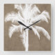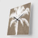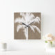 Retro Hawaiian Tropical Palm Tree Silhouette White Square Wall Clock