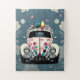 Retro Hippie Beetle Bug Car Floral Teal Jigsaw Puzzle
