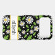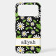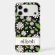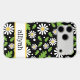 This iphone 17 pro max phone case is so cute and girly! It's hippie 70s daisy floral pattern with multi-sized white and yellow daisies on a black background and your name in a fun trendy font will go with everything! It will look fabulous on your phone!