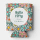 Retro Hippie Groovy Flower Hello Fifty Birthday Can Cooler