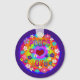 Retro Hippie Style Peace Love Flowers Rainbow Keychain