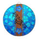 Old retro surfboard design with a ocean blue background and Hawaiian Honu Sea Turtles and hibiscus flower pattern. The Hawaiian Sea Turtle is a symbol of peace, good luck, and the spirit within. It is based on the Hawaiian legend of Kauila, a sea turtle that could change into a girl and watch over the children of Hawaii.