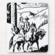 A black and white retro image of a couple riding horses. Image from a 1940’s Vintage Printers Book (with no copyright).