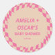 Retro Hot Pink Abstract Checker Custom Baby Shower Classic Round Sticker