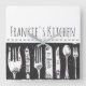 Stylish and unique black and white design of retro illustrated cutlery on Kitchen wall clock to customize with your own text.