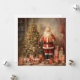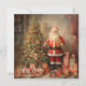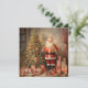 Retro illustration Santa Claus with Christmas tree Holiday Card