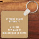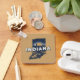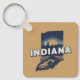 Stylish keychain features retro style scenic state silhouette of Indiana on light brown background. Add your own custom message, name or monogram on back.