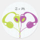 Retro Indie Headphones Heart Wedding (Purple/Lime) Classic Round Sticker