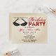 Une invitation de fête d'anniversaire comportant une illustration d'une paire de rétros lunettes de soleil de plot réflectorisé en haut est partie. Personnalisez le texte rouge et noir avec des détails de votre occasion.