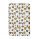 This fun Halloween bath mat features retro Jack o' Lantern trick or treat buckets, ravens, and festive black cats set on a white background.