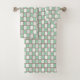 This Retro Jade and White Starbursts Towel Set is so adorably space age you won’t be able to contain your enthusiasm. And, why would you want to? This 1960’s mid century modern inspired design features a dark heather grey background and rows of perfectly imperfect rectangles in jade, white, and dove grey. Kitschy white and jade starbursts are placed in randomly selected rectangles. This mod pattern will make you feel like you jumped in a time machine and set the dial for irresistibly vintage!
