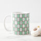 This Retro Jade and White Starbursts Coffee Mug is so adorably space age you won’t be able to contain your enthusiasm. And, why would you want to? This 1960’s mid century modern inspired design features a dark heather grey background and rows of perfectly imperfect rectangles in jade, white, and dove grey. Kitschy white and jade starbursts are placed in randomly selected rectangles. This mod pattern will make you feel like you jumped in a time machine and set the dial for irresistibly vintage!