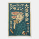 A striking retro manga-style concert poster bursting with nostalgic flair, “Yoru Matsuri: The Dragon’s Melody” showcases a whimsically cute dragon clad in intricate traditional Japanese attire, adorned with ornate patterns. Surrounding the dragon are playful nods to Japanese fair foods, a vibrant fusion of folklore, festivity, and retro manga charm.