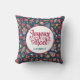 This fabulous Christmas folk art 16" x 16" blue pillow with a pattern of santas, gingerbread men, Christmas trees, ornaments, angels and presents that says Merry Christmas in French "Joyeux Noel" and has your last name would look awesome on your couch, bed or chairs! It's so festive and will go with any Christmas decor - it's rustic yet retro and modern yet traditional! It'll look fantastic and add that little extra Christmas touch to your home!