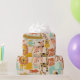 This retro style design features cute illustrations of an assortment of jungle animals birds, lions, giraffes, zebra, elephants, crocodiles, snakes, monkeys and more in shades of aqua blue, golden yellow, orange, brown and peach are set against a cream coloured background. This wrapping paper is perfect for wrapping up gifts for young children.