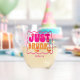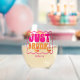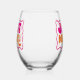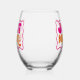 Celebrate the bride-to-be with these trendy and unique stemless wine glasses. This pink and peachy orange "just drunk" retro themed stemless wine glass is customizable with your recipient's name. These make perfect and memorable party favours!