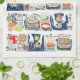 Retro Kitchen Cook Book Illustration Navy Blue Towel