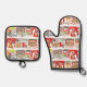 Retro Kitchen Cook Book Illustration Red Oven Mitt & Pot Holder Set