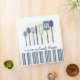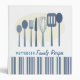 Retro style implements for cooking and eating are featured on this cool recipe binder in shades of blue. Customize the text on the cover and spine with your family name or other message.