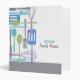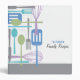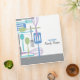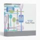 Retro style implements for cooking and eating are featured on this cool recipe binder in cool shades of purple, blue, turquoise and grey on a crisp white background. Customize the two lines of text on the cover with your family name or message. Also available - matching blank recipe pages, apron and kitchen towels!