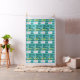 With this Retro Kitchen Fabric, you can have your pie and eat it, too. This kitschy, minimalist art drawing features a perfect 1950's housewife, in her mid century modern kitchen. The beautiful baker is wearing a flouncy, green dress and a white apron with red detailing. Not a hair on her blonde head is out of place. In one hand, she is holding the fruit of her labour--a gorgeous, lattice topped, fruit pie. One glance and you'll know that her flaky pie crusts are second to none. She is standing on an aqua and teal chequerboard floor, which is undoubtedly clean enough to eat off of. Against an aqua wall, we see teal cabinetry with aqua trim work, a red countertop, red drawer pulls, and black starburst accents. A red, starburst clock is hanging on the wall. To the side, there is a state of the art, white refrigerator with silver handles. At least, the fridge was state of the art in 1950's. Now, it's just plain dreamy! Whether you're Suzie Homemaker or simply have an affinity for all things vintage, you're sure to love this scrumptious slice of Americana.
