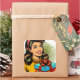 Retro comic book style pop art beautiful woman holding a birthday gift smiling,