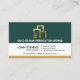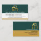 A retro column design with green, white and brown colours. You have a gold building re-bar logo at the top that you can use alongside the business name. In the corresponding white layer are your prestigious name and job title with the contact details in their respective buttons. A slogan to publicize your services is at the base of the card. Change the caption remarks to suit your needs.