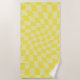 Retro Lemon Yellow Pastel Warped Chequerboard Beach Towel