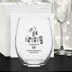 60th birthday party personalized with name and date stemless wine glass for your sixtieth birthday party celebration. The words "Let's Get Groovy" are custom designed using trending Retro Black and Silver font typography. . Text colors for the words below can be changed using the edit menu. Fun, classy and stylish!
