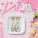 Fun hand illustrated and lettered plate featuring sunglasses and the phrase catching some rays. Great for a pool party, a barbeque or just a fun summer get together.