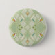 A retro green geometric bohemian tile pattern pinback button designed with a light green vintage wallpaper pattern.