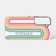 A funky line arch pattern with pastels - blue, green, yellow, orange and red. The retro design includes curves and lines in thick colours. Add your name or delete the text for a fun retro cover. The name is a trendy outline font in grey.