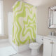 Retro Liquid Swirl Abstract Pattern in Light Lime Linden Green and Beige Shower Curtain. Contemporary modern design with a 60s 70s 80s 90s boho minimalist aesthetic. A little bit trippy, with a lively, psychedelic vibe. In soothing pastel neutral tones. By Kierkegaard Design Studio.