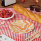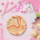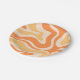 Retro Liquid Swirl Abstract Pattern in Soft Orange Paper Plate