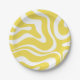 Retro Liquid Swirl Abstract Pattern in Yellow Paper Plate