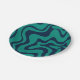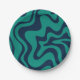 Retro Liquid Swirl Groovy Abstract Blue and Teal Paper Plate
