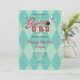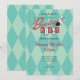 Bowling Night Invitation features the typography "Bowling Night" in a retro, modern 50's style logo, with illustrated bowling ball and pins. Incorporating elements of blue, red, white, and grey, dots, and a diamond patterned background. Includes template for personal customization.