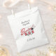 Bowling Party Favour Bags features the typography "Bowling Party" in a retro, modern 50's style logo, with illustrated bowling ball and pins. Incorporating elements of blue, red, white, and grey, dots, and a diamond patterned background. Includes template for personal customization.