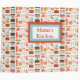Perfect way to store all of your recipes in this large beautiful binder featuring an allover print with different kitchen tools and food in great colours of Tangerine, Spring Blue, and beige. Personalized with the text of your choice on the front cover.