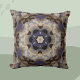 Retro Mandala Flower Blue Tan and Brown Throw Pillow