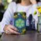 This retro mandala design features green, blue, and orange in a flower pattern. Funky and vibrant visuals for anyone who likes bright colours!