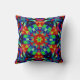 Retro Mandala Flower Red Green and Blue Throw Pillow